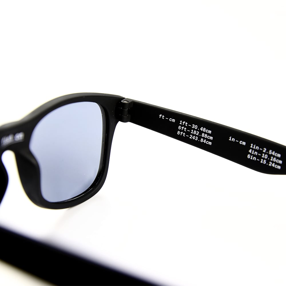 日本人の顔にもフィットしやすいLOCOフレームをベースに、カラーはマットな印象のブラック・ソフトを選択。レンズは要望の多かった明るい偏光レンズ、ライトスモークを採用しました。
