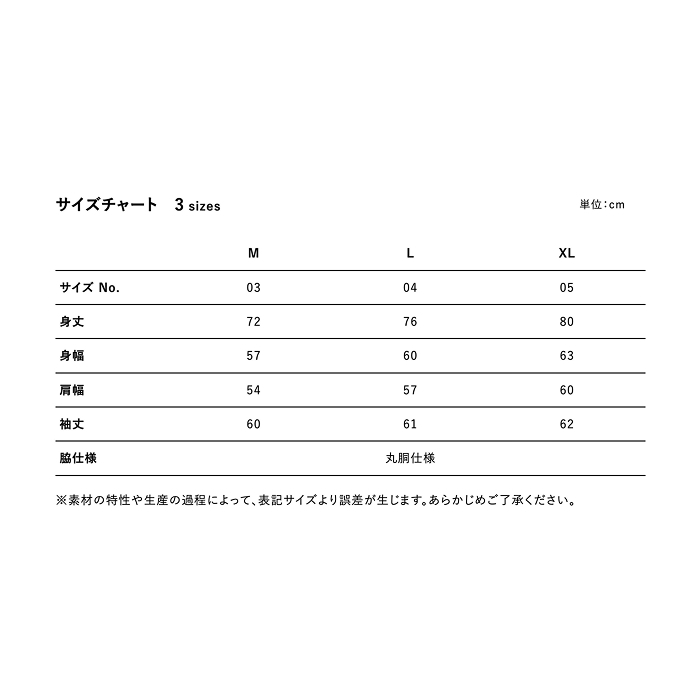 ※ルーズなシルエットになりますので大きすぎるのが気になるかたはワンサイズ下げてもよいかもしれません。サイズ表をご確認ください。