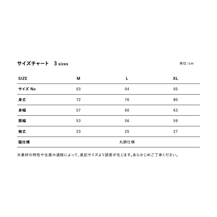 ※ルーズなシルエットになりますので大きすぎるのが気になるかたはワンサイズ下げてもよいかもしれません。サイズ表をご確認ください。